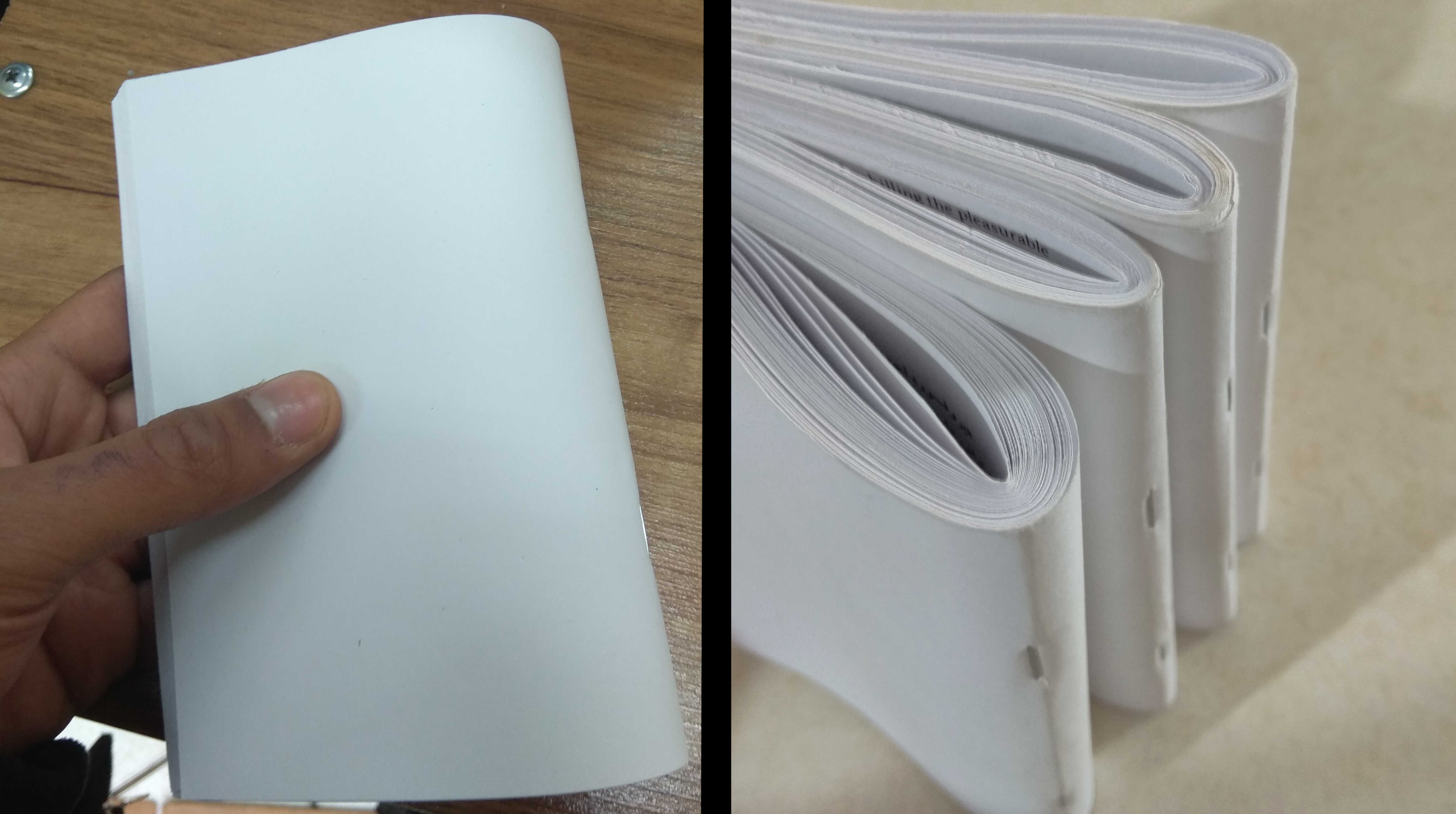 پس اگه بتونیم کتاب رو به فرمت دفتر مانند(مثل دفتر ۱۰۰ برگایی که از وسطشون برگ میکندیم) چاپ کنیم مشکلمون حل میشه.